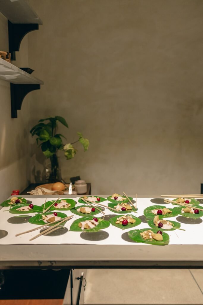 Artists from Leh, Goa, Varanasi, Punjab, and Mumbai converged—carrying with them the soul of their journeys and the voices of instruments like the Mohan veena, Dramyen, Erhu, Rabab, Sarod, Noori, and Tabla. As the music meandered through stillness and flow, it set the rhythm for another layer of the experience: a freestyle edible arrangement that responded to sound.